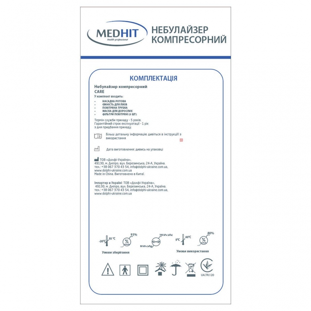 Ингалятор (небулайзер) Medhit Care компрессорный гарантия 1 год