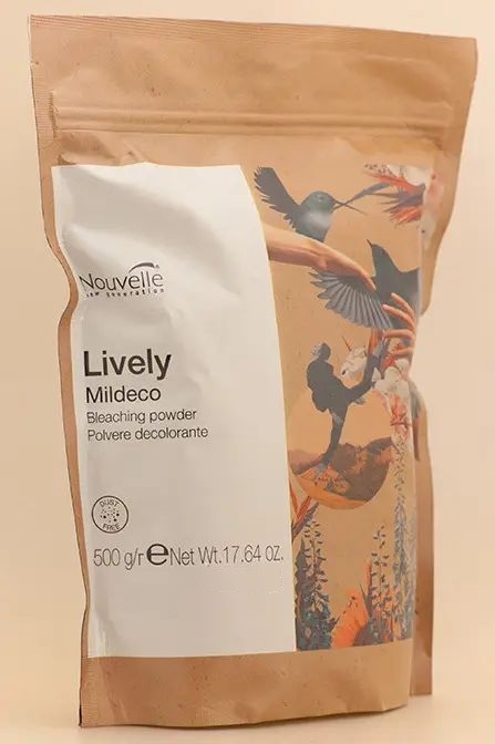 - Смешивается с окислительной эмульсией Nouvelle Lively Cream Peroxide (3%, 6%, 9%, 12% в зависимости от уровня осветления) в пропорции 1:2.
