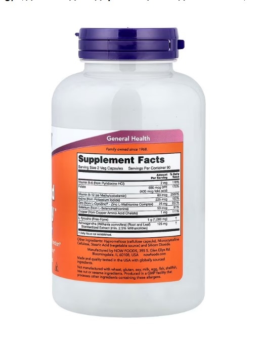 NOW THYROID ENERGY— это полноценная пищевая добавка для поддержания здоровья щитовидной железы. Компания NOW объединила йод и тирозин, два компонента, необходимые для синтеза гормонов щитовидной железы. Минералы селен, цинк и медь добавлены в качестве кофакторов, необходимых для нормальной работы щитовидной железы. Кроме того, содержит аюрведический травяной экстракт ашваганды, который дополняет его питательные компоненты.