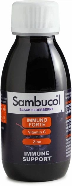 Sambucol Immuno Forte Liquid 120мл из черной бузины + витамин С + цинк для иммунитета, от гриппа и простуды