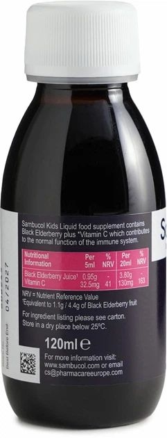 Sambucol Kids - вкусная, удобный сироп для детей, содержащий натуральную черную бузину и витамин С, которые помогают укрепить иммунную систему.