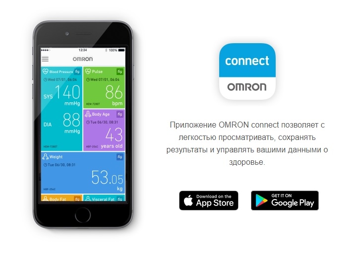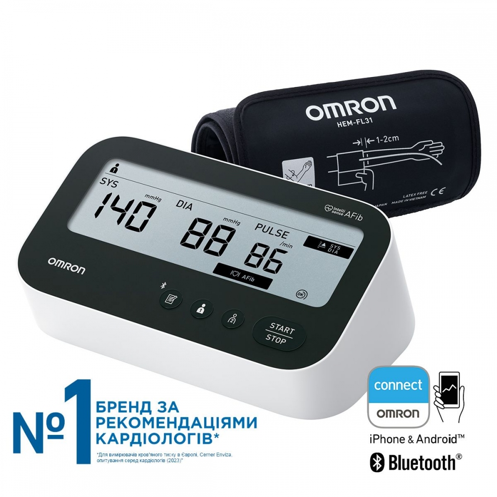 ¤ Передача даних на мобільний додаток OMRON Connect, доступний для Android та iOS через bluetooth з'єднання. Доступна повна синхронізація даних.