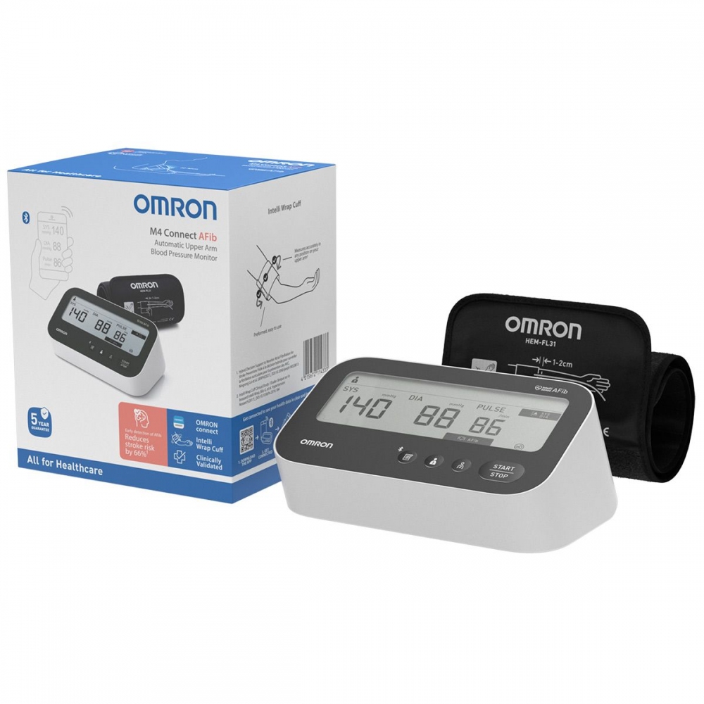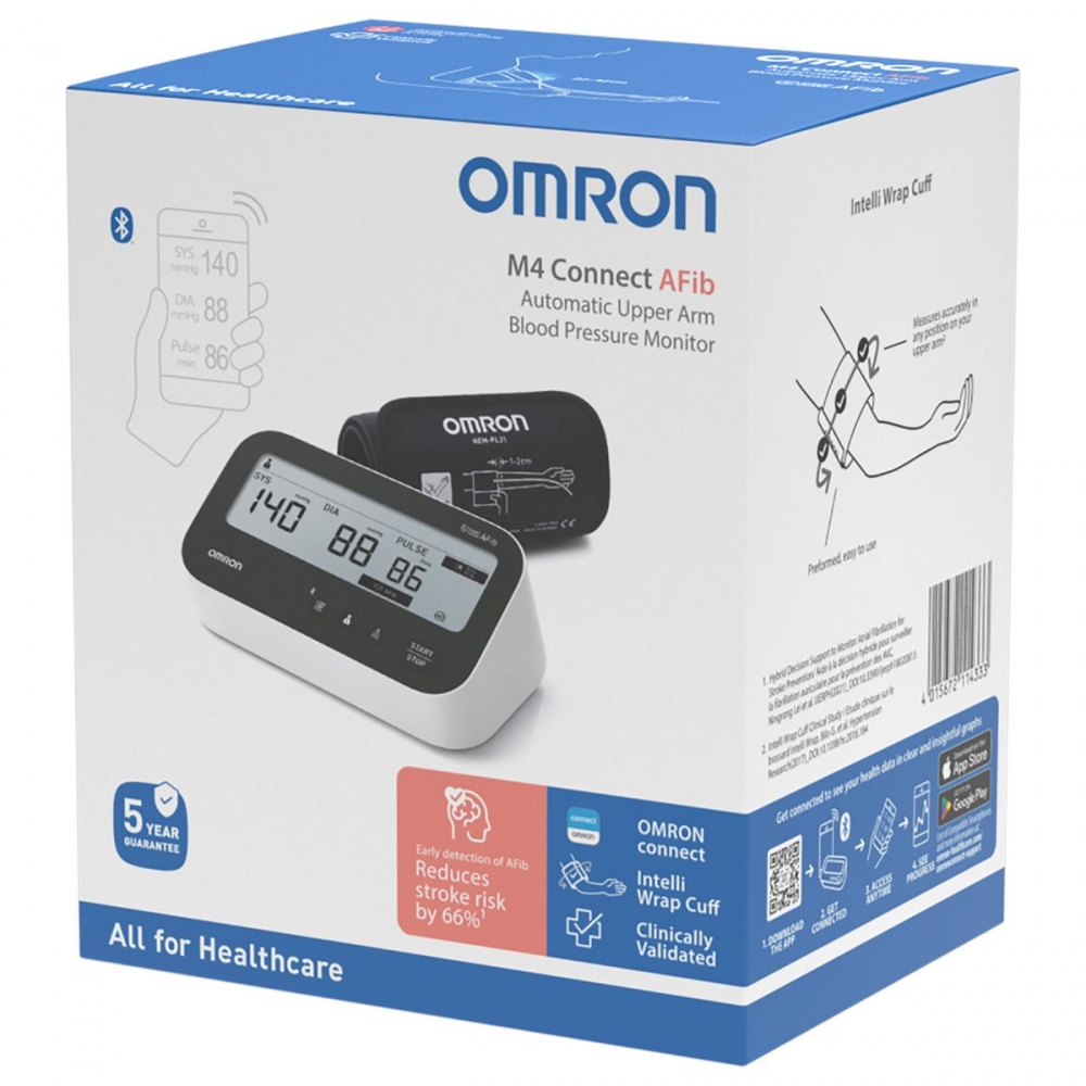 Тонометр M4 Connect має функцію індикації фібриляції передсердь (AFib). Прилад автоматично аналізує серцевий ритм при кожному вимірі та може виявити ознаки фібриляції передсердь (AFib) – стану, який може бути безсимптомним, але пов'язаний із підвищеним ризиком інсульту. Це надає додатковий сигнал своєчасно звернутися до лікаря для консультації.