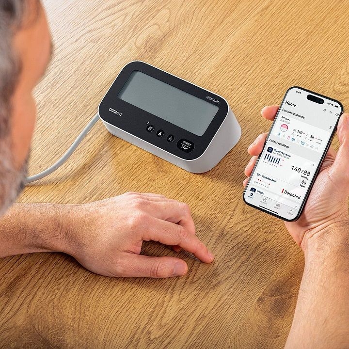 Omron M4 Connect AFib підтримує синхронізацію з мобільним додатком OMRON Connect через Bluetooth. Усі результати автоматично передаються смартфону, де зберігаються у зручному форматі. OMRON Connect — це зручна мобільна програма для контролю здоров'я, яка синхронізується з монітором артеріального тиску M4 Connect AFib та іншими пристроями OMRON. Він автоматично зберігає показники АТ, пульсу та інших вимірів, дозволяючи відстежувати їх у динаміці. Додаток наочно показує графіки, допомагає помічати тривожні тенденції та легко ділитися даними з лікарем чи близькими. OMRON Connect можна безкоштовно скачати для смартфонів для Android та iPhone (iOS).