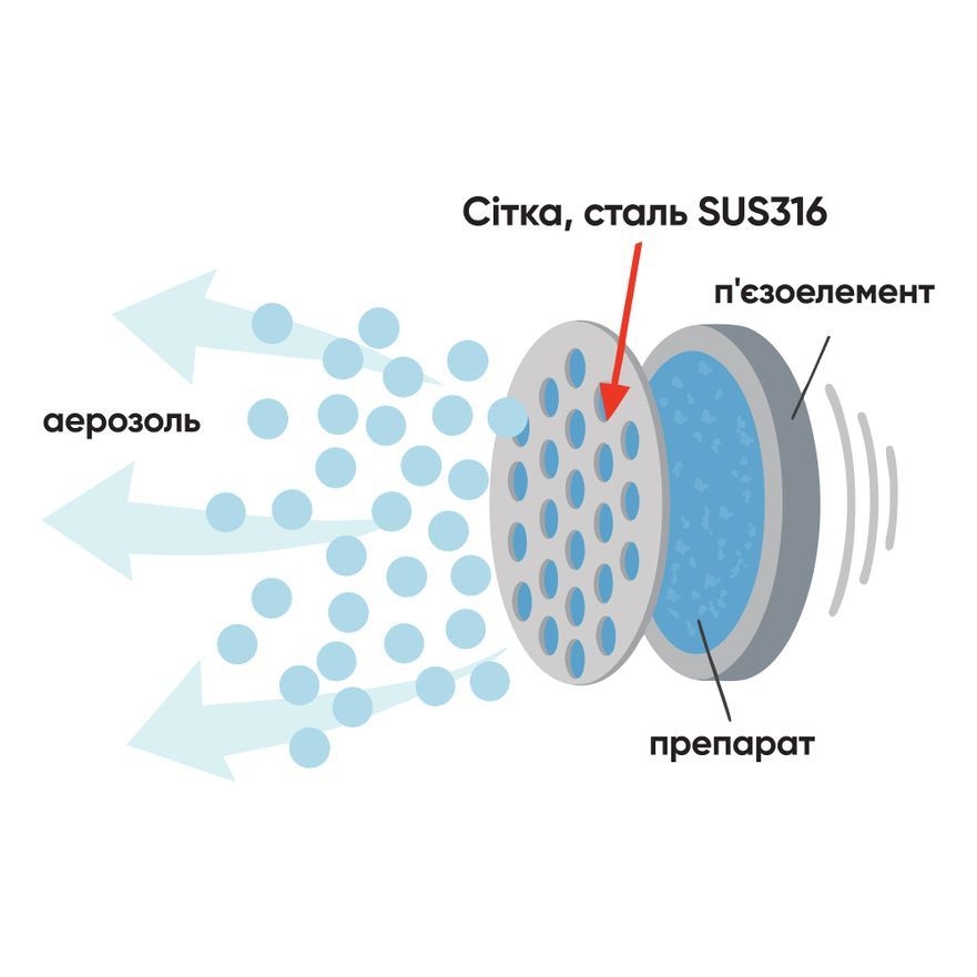 Швидкість розпилення ≥0,2 мл/хв, що дозволяє частинкам аерозолю потрапляти в найглибші відділи дихальної системи і надавати швидкий ефект.